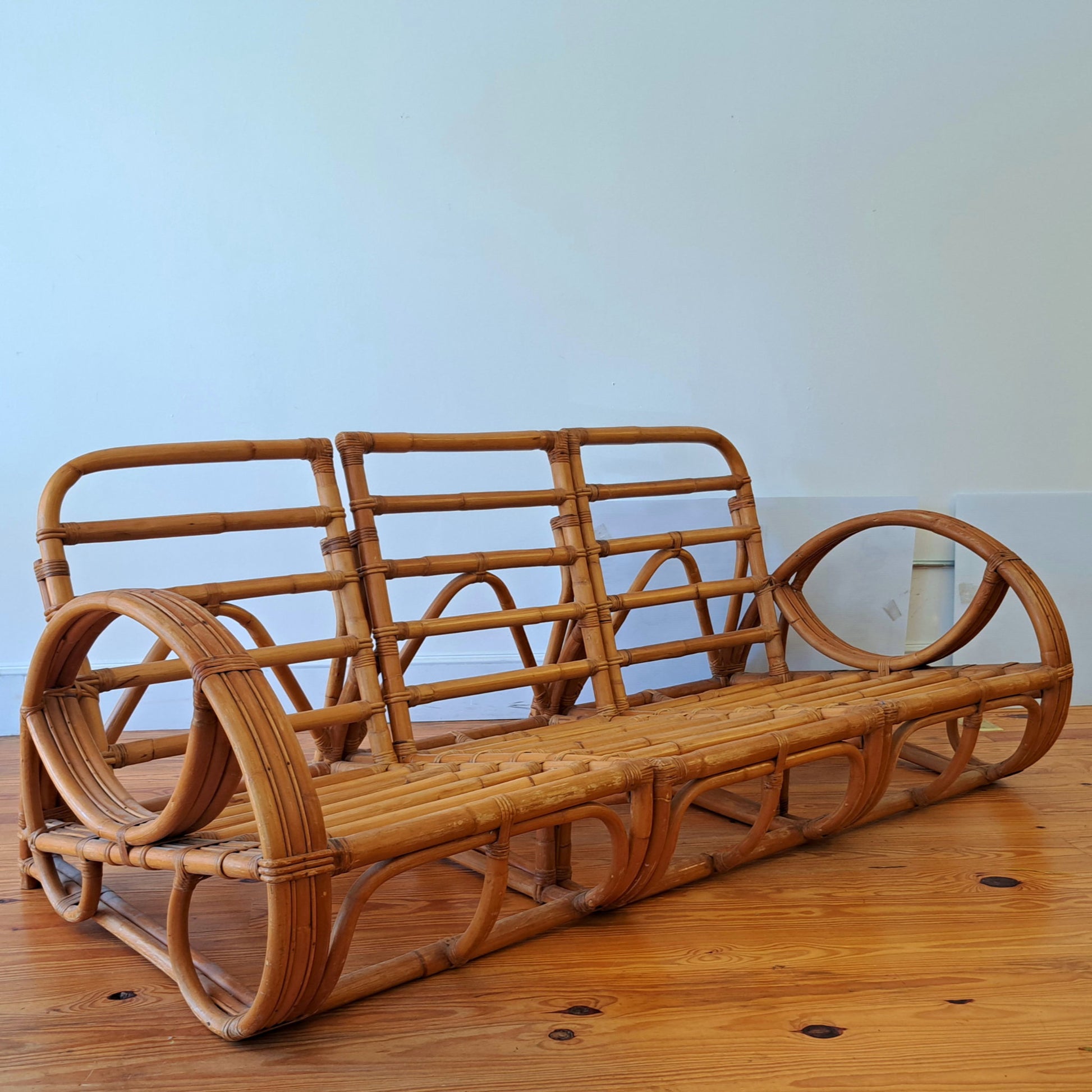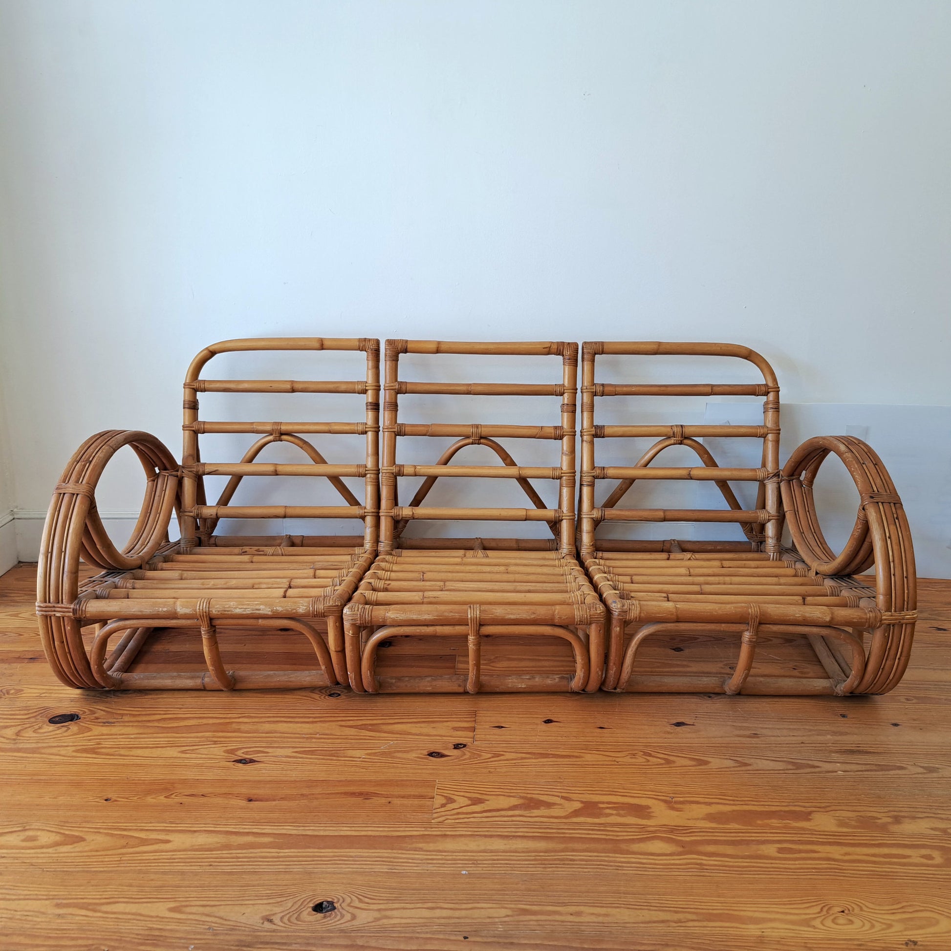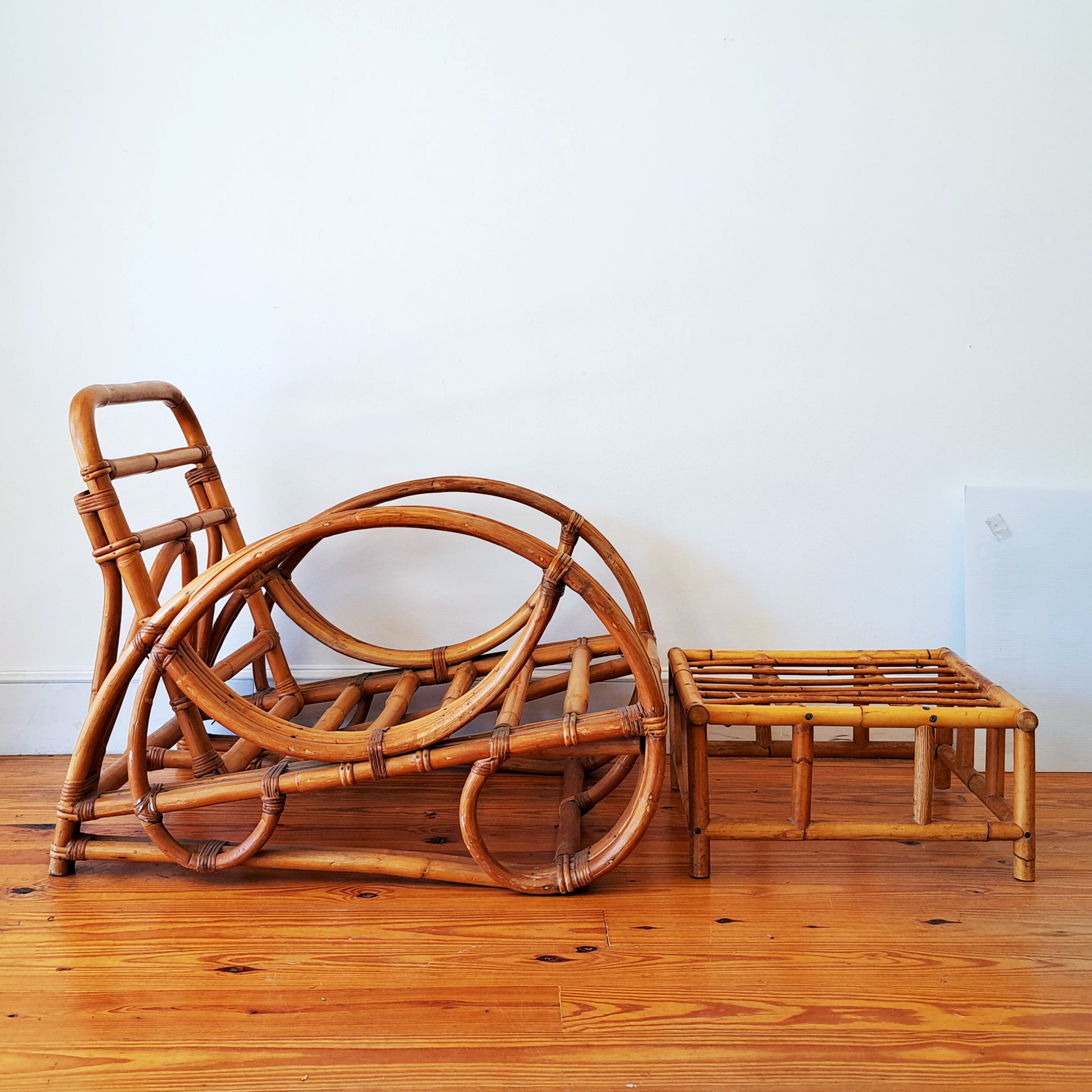 Bamboo Seating Set with Ottoman and Glass Top Table